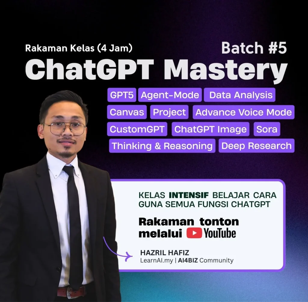 Notes : Jika anda nak belajar secara detail dan lebih advance, boleh dapatkan Module ChatGPT Mastery berikut. Ini adalah advance module terkini untuk anda belajar all-in , semuanya tentang ChatGPT dan semua fungsi yang ada.